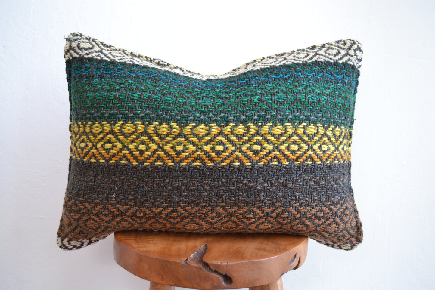 Nos coussins péruviens sont fabriqués à partir de couvertures péruviennes vintage, appelées Frazadas, et présentent des textiles péruviens authentiques. Chaque coussin est fabriqué à 100 % en laine et teint avec des ingrédients naturels, mettant en valeur l'artisanat traditionnel. Le dos de chaque coussin est constitué d'un morceau de laine grise solide, tandis que les bordures sont ornées d'un fil épais pour une touche finale élégante. Parfaits pour ajouter une touche artisanale unique à votre décoration intérieure, ces coussins péruviens fabriqués à la main offrent à la fois style et confort.